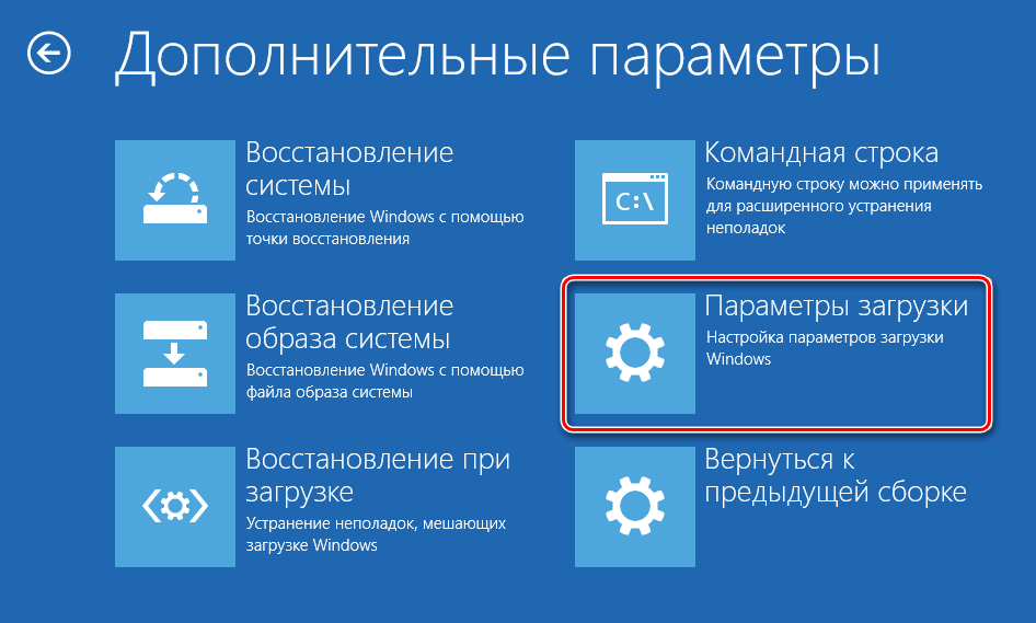 - Далее выбираете пункты: Диагностика – Доп. параметры – Параметры загрузки – Перезагрузить.