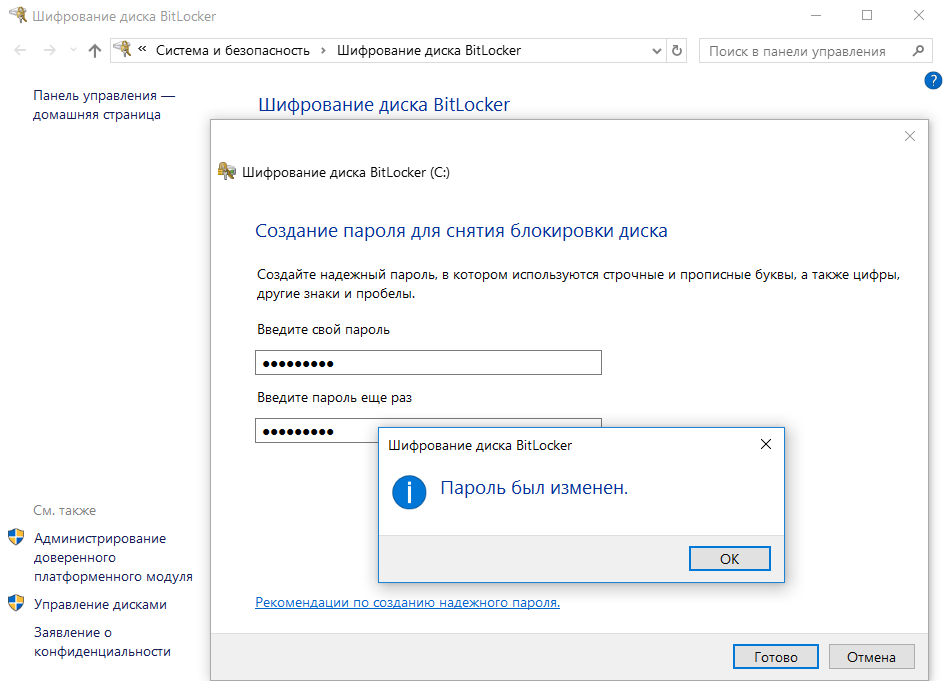 Все. Данные на диске теперь зашифрованы и надежно защищены. Без пароля к ним не подобраться.
