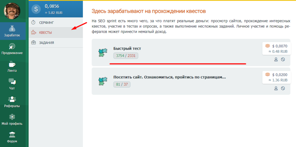 В целом SEO Sprint – бесплатный сайт, в нем реально заработать деньги и вывести их на свой кошелёк. Однако вопрос скорее в том, какие именно деньги вам здесь удастся заработать. Будьте готовы к тому, что придётся приложить усилия. А о том, как быстро заработать свои первые деньги, читайте далее.
