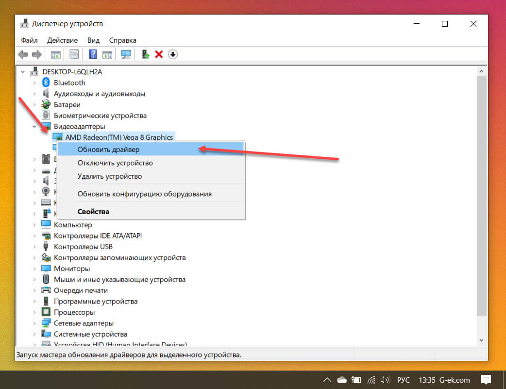 Обновить драйвера для вашего устройства можно на сайте производителя видеокарты. Альтернативный способ — наш любимый диспетчер устройств.