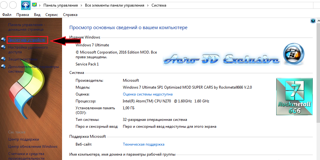 Шаг 1. Зайдите в «Мой компьютер», кликните мышкой по пустому пространству окна и в появившемся списке выберите строчку «Свойства». В открывшемся окне с информацией о компьютере и операционной системе с левой стороны кликните по строчке «Диспетчер устройств».