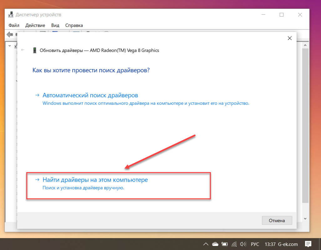 - Далее указать месторасположение программного обеспечения, если имеется в комплекте с ПК диск-драйверов либо произвести поиск в сети.