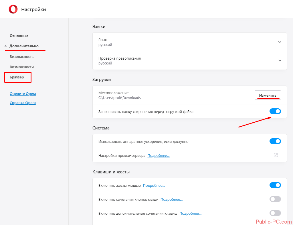 Иногда пользователи скачивают файлы из интернета в папку по умолчанию. Находится она на диске C. На примере браузера Opera покажем, как настроить загрузку.