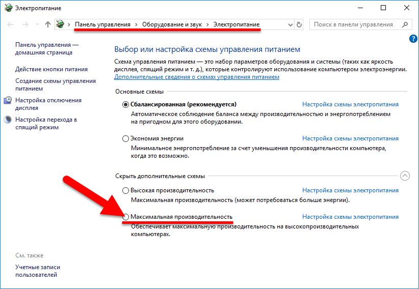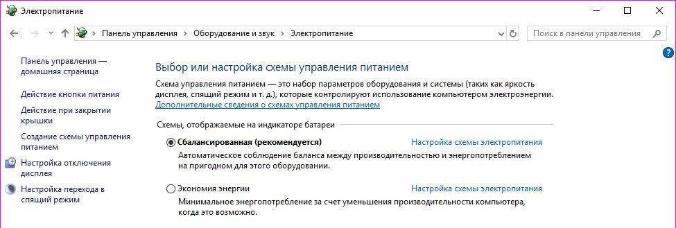 - Дальше вместо схемы управления питанием Экономия энергии выберите Высокая производительность или Сбалансированная (рекомендуется).