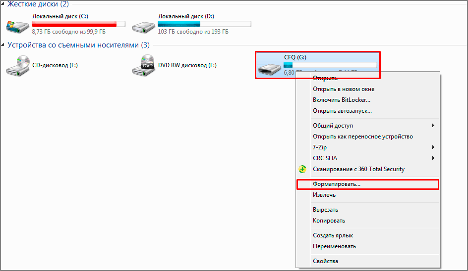 Если файлы в неоткрывающемся для чтения разделе не представляют особой ценности, то наиболее простым способом устранить неполадку будет форматирование. В результате проведения этой процедуры на запоминающем съемном накопителе будет настроена новая файловая система, что само по себе позволяет устранить большинство неполадок.
