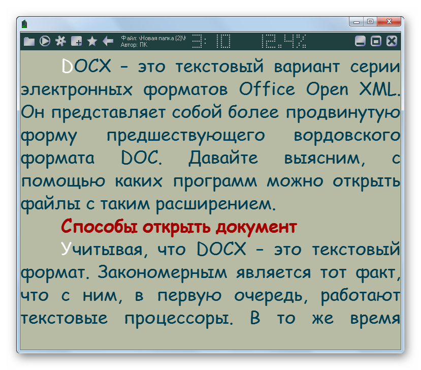 Итак, способов открыть документ формата docx существует несколько, и все они просты и доступны. Поэтому данный формат не «привязан» именно к 2007 и обновленных версий офиса от MS– документы docx легко можно открыть в более ранних версиях Ворда и в других программах. Приведенной информации вполне достаточно, чтобы определиться, какой программой лучше воспользоваться для открытия файлов docx.