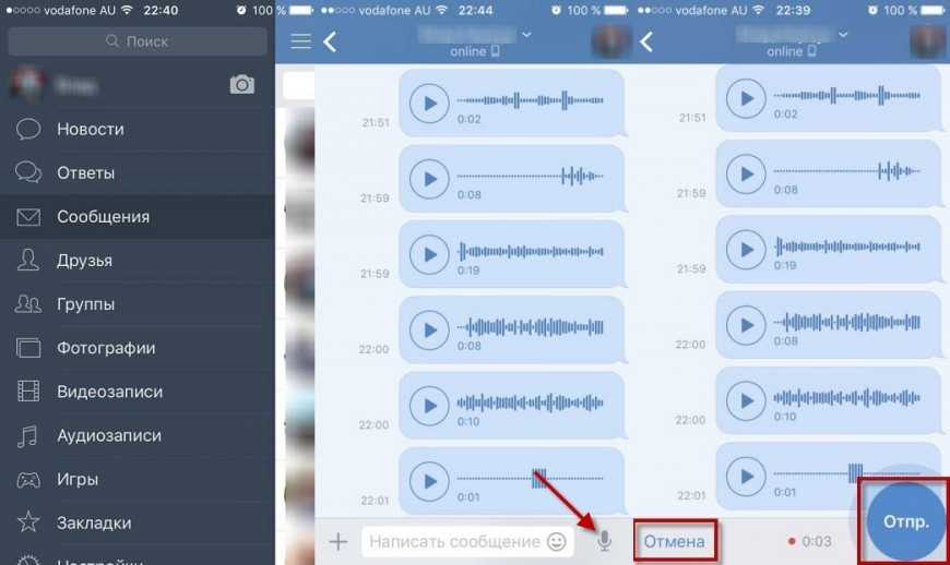 Для начала посмотрим, как отправлять голосовые сообщения в приложении ВК на Айфон. В официальном клиенте ВКонтакте функция пересылки аудиопосланий появилась в версии 2.9.1 в 2016 году. Поздновато, но сейчас уже поздно жаловаться – голосовые сообщения работают прекрасно.