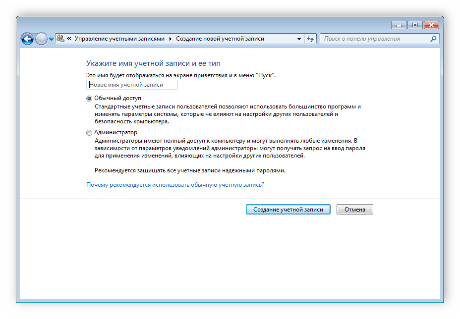 Мало ли человек просто по неосторожности что-то удалит…. А так нам советуют при создании любых новых пользователей Windows 7 (то есть даже для себя), назначать им тип «обычная»