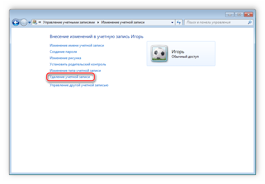 Кроме создания и смены доступна и деактивация профилей. Выполняться все действия должны администратором, а сам процесс удаления не займет много времени. Выполните следующее: