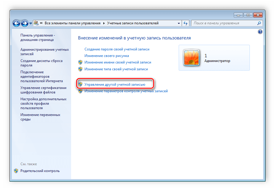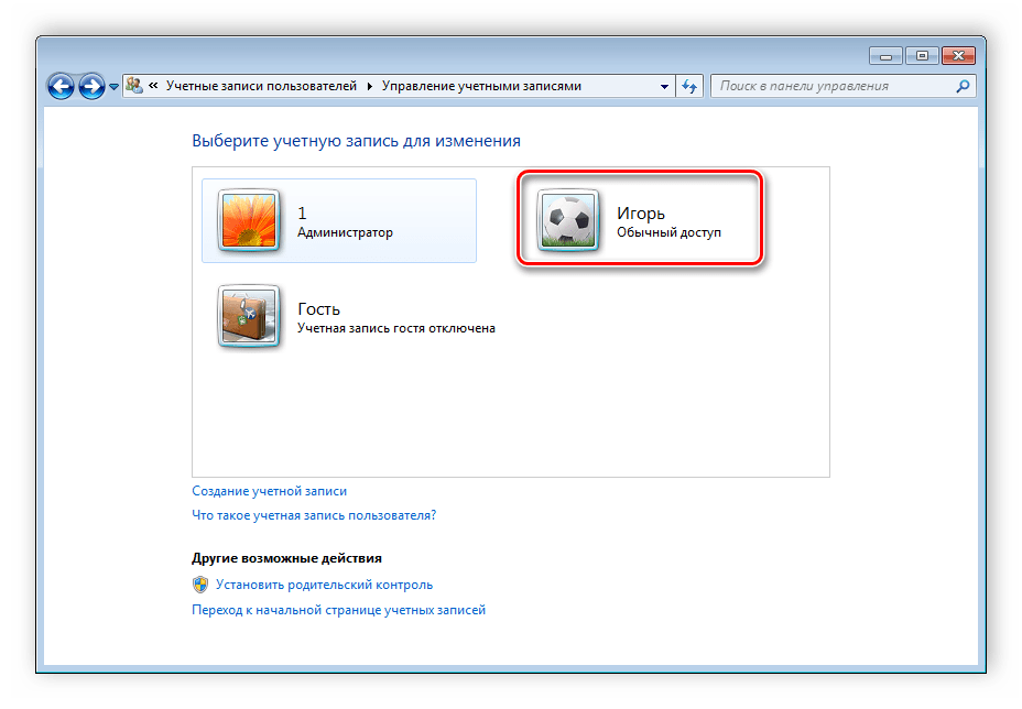Всего в ОС Windows 7 присутствует три различных типа профилей. Все возможные функции доступны администратору, он также управляет другими аккаунтами. Обычным доступом обладают остальные пользователи. Им запрещено устанавливать или удалять ПО, изменять редактировать файлы или настройки, доступ открывается только в случае ввода пароля администратора. Гостевой – самый ограниченный класс аккаунтов. Гостям разрешена только работа в некоторых программах и вход в браузер. Теперь, когда вы ознакомились со всеми типами профилей, перейдем непосредственно к их созданию и смене.