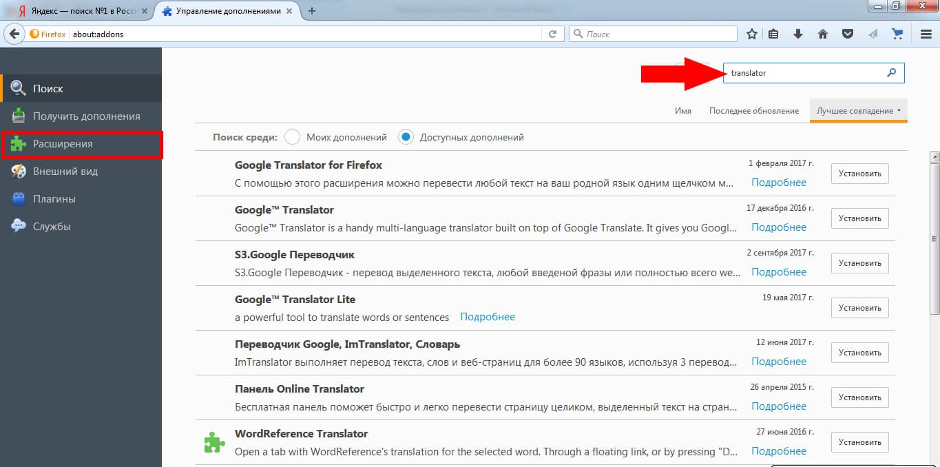 Если по какой-то причине вам не нравится предложенный мной вариант переводчика для firefox, то вы можете найти другой на свой вкус и цвет. Искать нужно в перечне расширений.