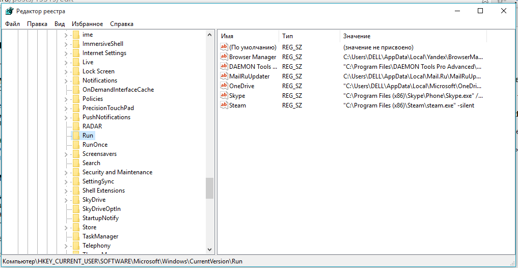 - HKEY_LOCAL_MACHINE\SOFTWARE\Microsoft\Windows\CurrentVersion\Run – проследуйте по этому пути, выбирая папки слева.