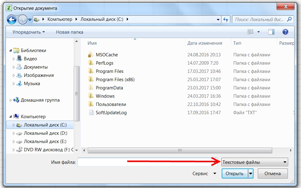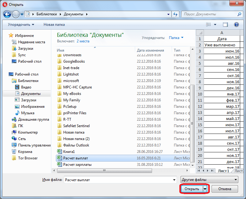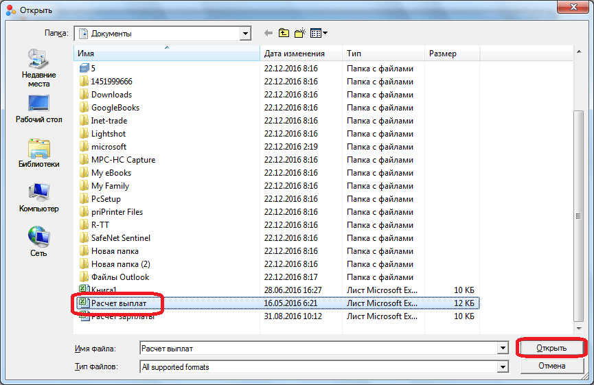 Открывается окно, в котором выберите файл в формате Excel и кликните по кнопке «Открыть».