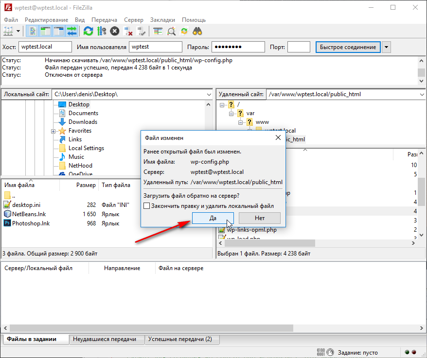 Если программа долгое время бездействует, то отключается от сервера. Но если вы сохраняете файл, то FileZilla автоматически подключится к серверу снова и выполнит работу по передаче. Как видите, работать с FileZilla очень просто и удобно.