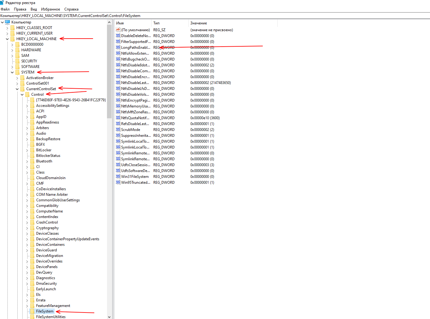 - В ней пройдите по пути, указанному на фото до файла Long Paths Enable.