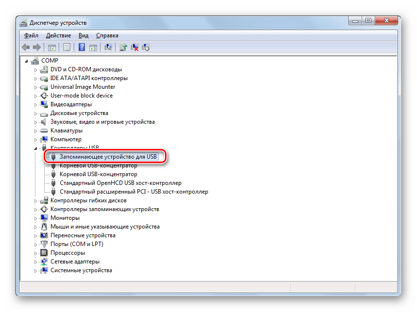Прежде всего нужно произвести перепрошивку контроллера USB-накопителя. Но сразу нужно узнать, какое именно ПО на него необходимо инсталлировать. Это можно сделать через «Диспетчер устройств».
