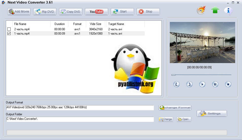 Next Video Converter совмещает в себе онлайн загрузчик с YouTube и конвертер. Дополнительно софт позволяет прожигать файлы на DVD-диск. ПО распространяется бесплатно и будет отличным помощником, если вас не пугает отсутствие русской локализации. Кроме этого, небольшим минусом может стать устаревший дизайн в стиле Windows XP.