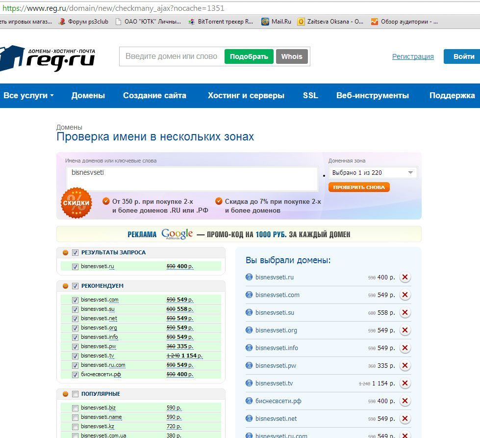 Советы по регистрации домена: