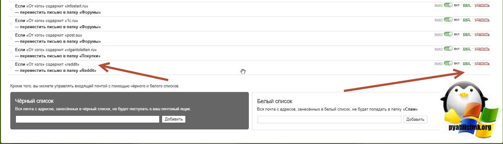 Обратите внимание, что в данном же разделе есть возможность управления входящей почтой Яндекса с помощью чёрного и белого списков. Это более высокая настройка, которая позволяет вам осуществлять обработка почты Яндекс до ваших правил