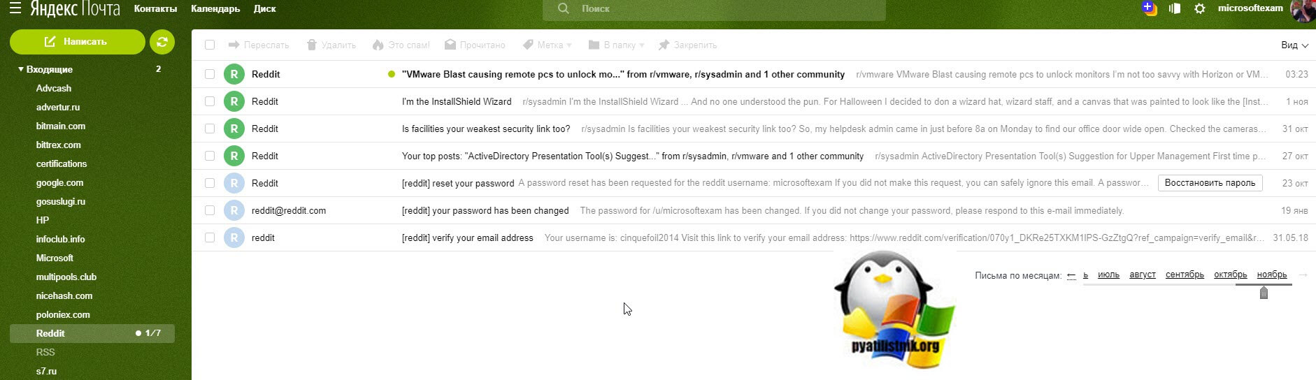 Заходим в ранее созданную папку «Reddit» и видим, что письма попадающие под правила обработки почты, были переложены в нее. И все вновь входящие будут туда попадать сразу. Фильтрация писем работает корректно.