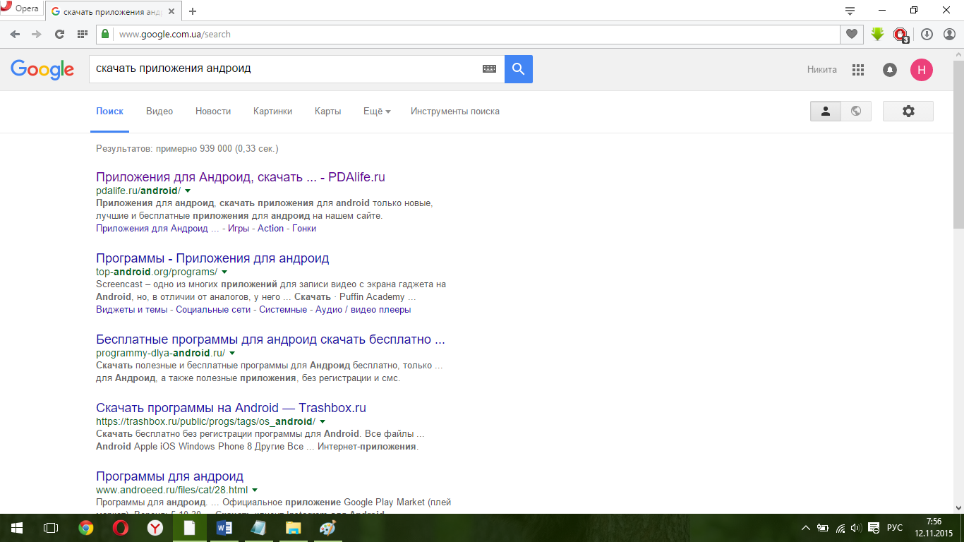Сегодня очень сложно найти проверенный сайт для надежных загрузок, если не знать, как правильно искать. В поисковой строке браузера вводим фразу: скачать приложения андроид, первая ссылка в выдаче — это то, что нужно.