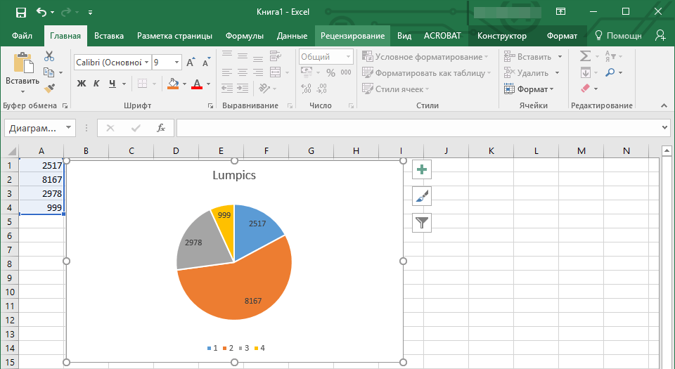 Подробнее: Как в Excel сделать диаграмму Выделите и вырежьте полученный объект. Сделать это можно нажатием клавиш «Ctrl+X» либо же с помощью мышки и меню на панели инструментов: выберите диаграмму и нажмите «Вырезать» (группа «Буфер обмена», вкладка «Главная»).