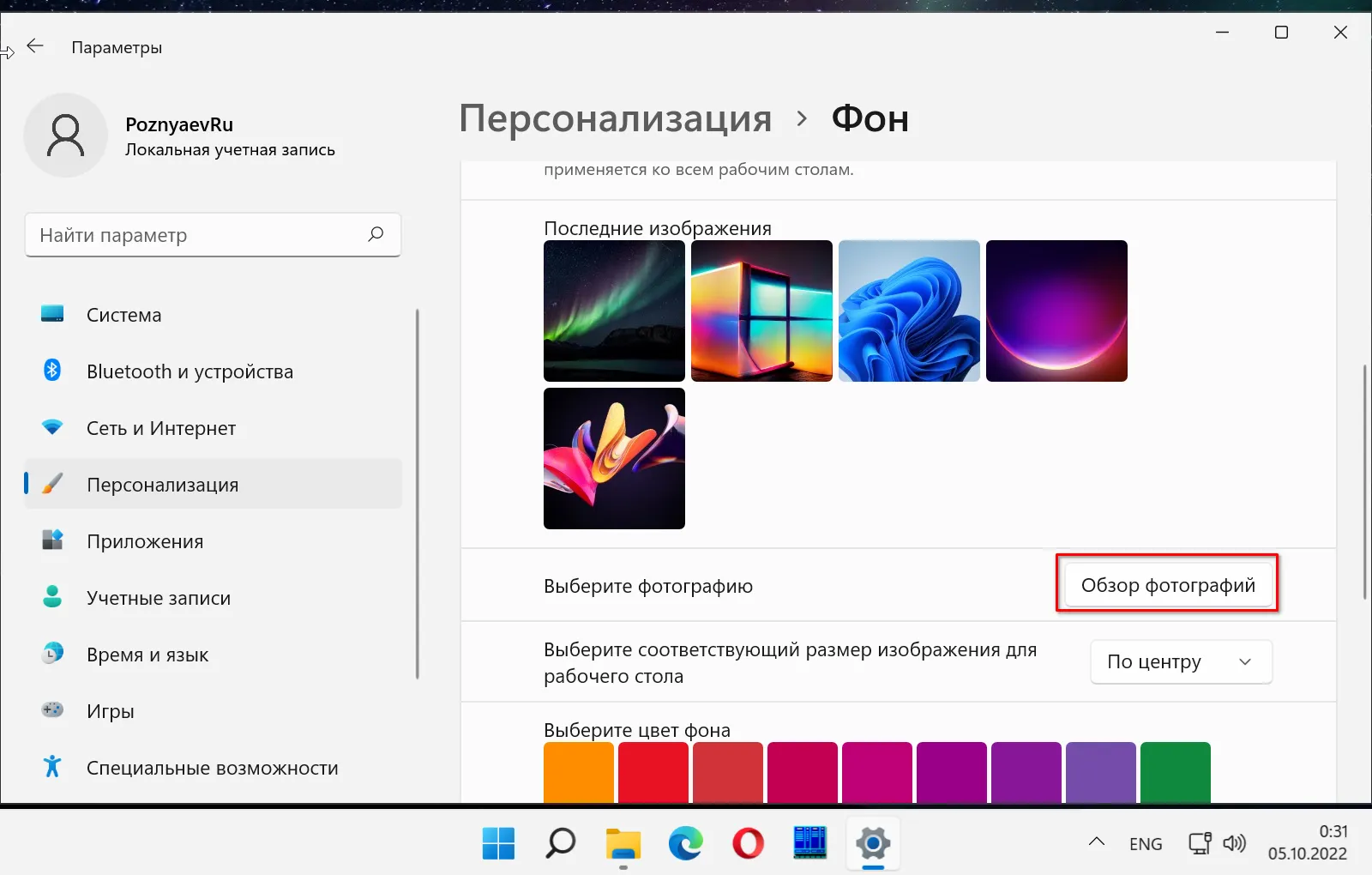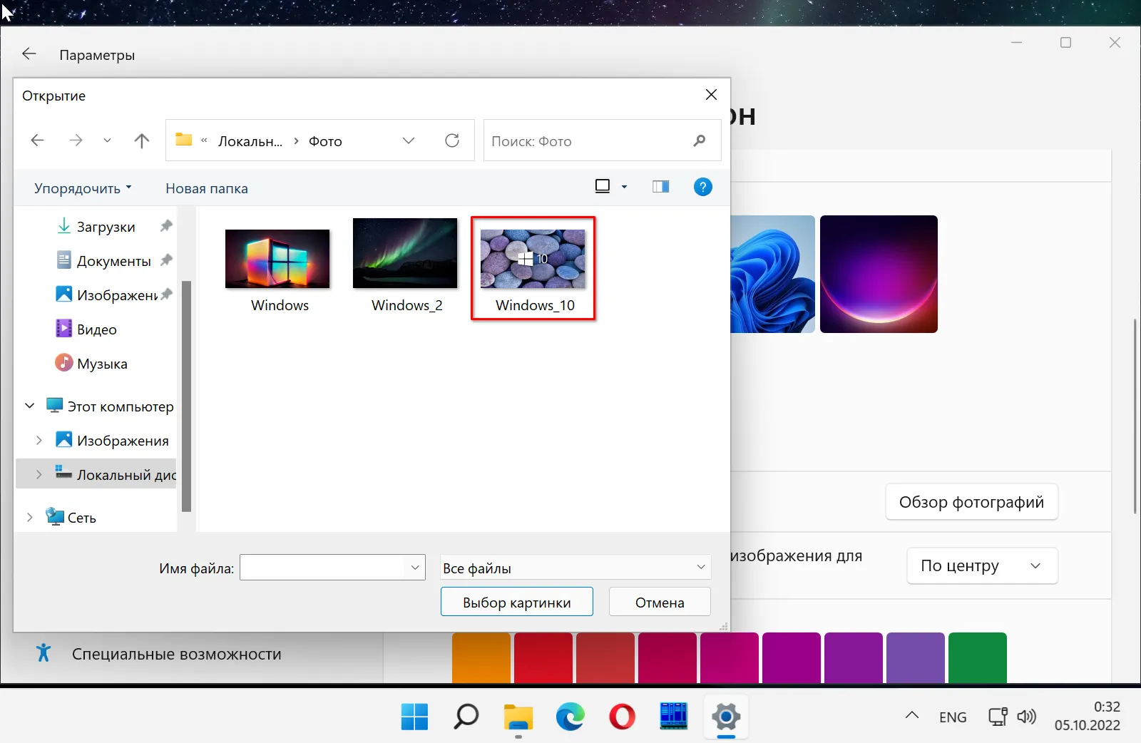 Как поменять фон рабочего стола в Параметрах Windows 11