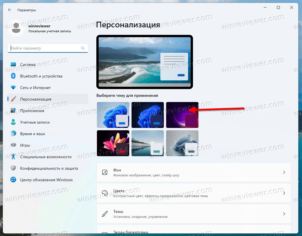 Как изменить тему в Windows 11