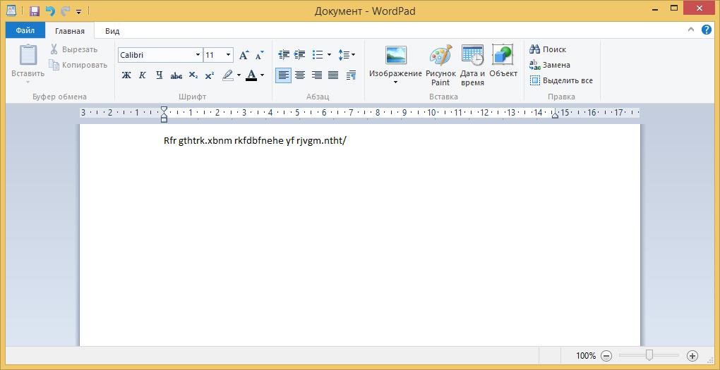 Бывают случаи, когда пользователь по ошибке вводит текст не глядя в монитор на русском языке в текстовый редактор с включенной раскладкой клавиатуры на английском языке. Весь набранный текст, таким образом, придется удалить и заново набрать на русском языке.