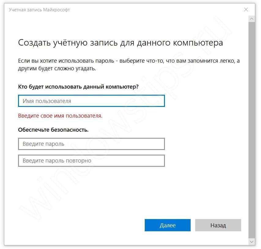 - Пропустите предлагаемые пункты о том, как связаться с человеком и создать учетную запись Microsoft.