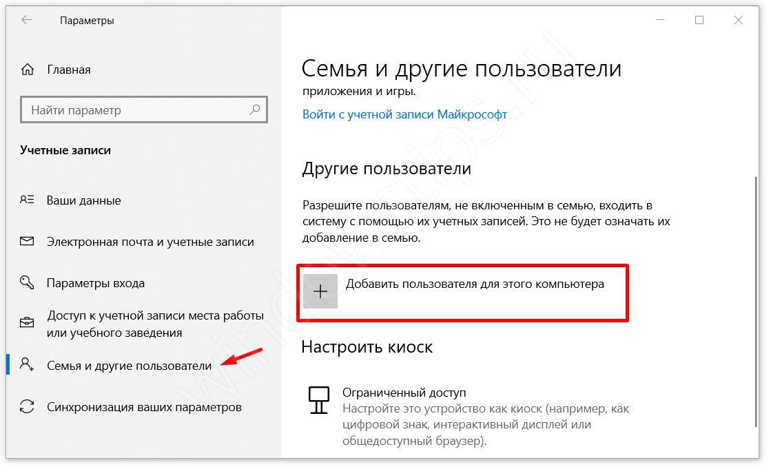 Зайдите в «Настройки», «Аккаунты», «Семья и другие пользователи» .