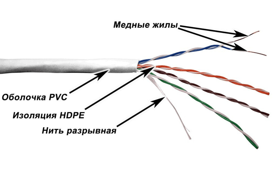 Обращайте внимание при покупке, чтобы цвета внутренних жил кабеля легко распознавалась. Он бывает двух типов — 8 жил и 4 жилы
