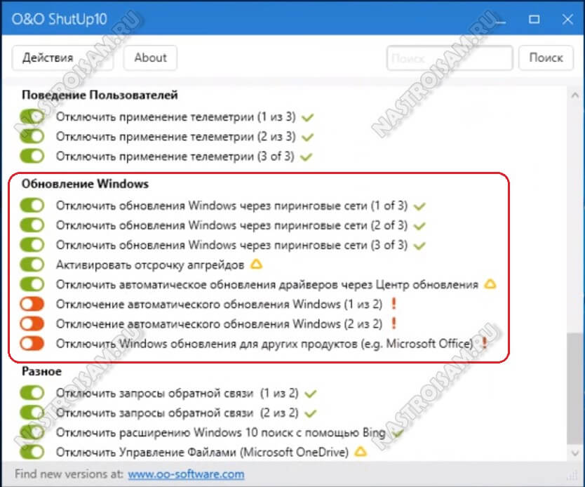 Такой способ убрать автоматическое обновление Windows 10 вполне можно назвать «для лентяев». Всё сводится к простой задаче — запустить приложение и поставить соответствующую галочку. С другой стороны — всё гениальное просто и зачем усложнять себе жизнь. Лично я для этих целей предпочитаю использовать программу O&O ShutUp10. Бесплатная, не требует установки и справляется со своими задачами на «раз-два».
