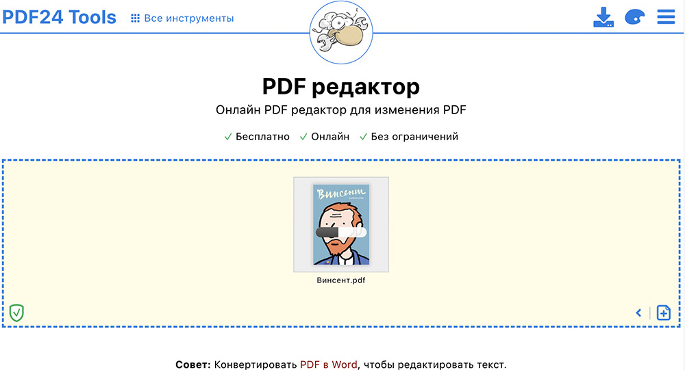 PDF24 Tools представляет собой онлайн-ресурс, объединяющий большое количество инструментов для создания, изменения и конвертации PDF-документов. С его помощью можно редактировать текст, добавлять фотографии, преобразовывать форматы и выполнять ещё массу полезных операций.