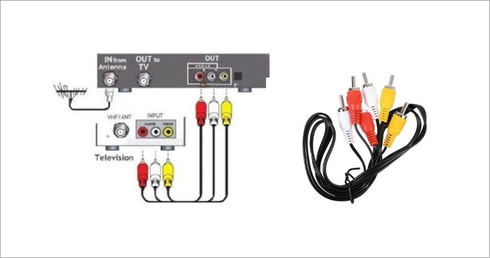 1. Подключите оборудование. Соедините видеоплеер с телевизором с помощью RCA. Корпус кабелей и разъемы должны соответствовать по цветам.