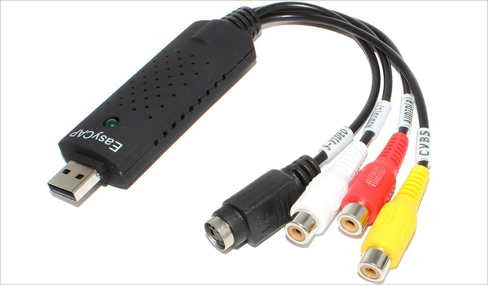 Метод подходит для оцифровки с помощью ноутбука или современного компьютера. Потребуется специальная внешняя плата захвата, которую можно купить за 1000-1500 рублей в магазинах электроники. Также понадобится: