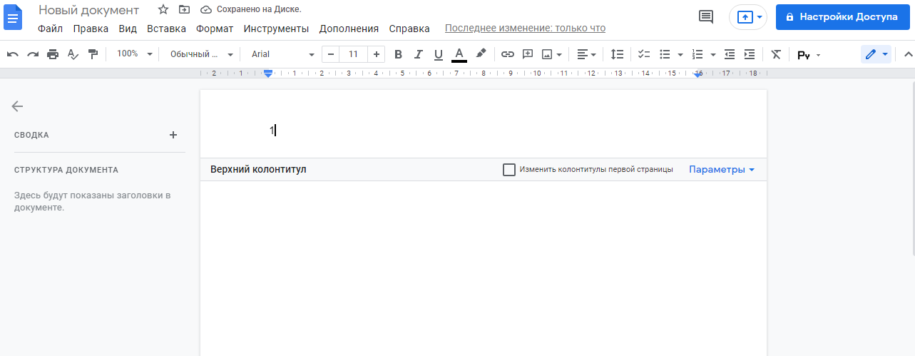 Теперь нумерация осуществляется, как и раньше, но на первой странице не отображается её номер, в нашем случае номер 1.