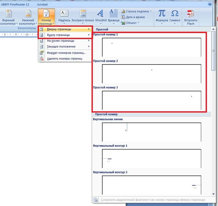 Нумерация страниц в Word 2007, 2010, 2013 и 2016