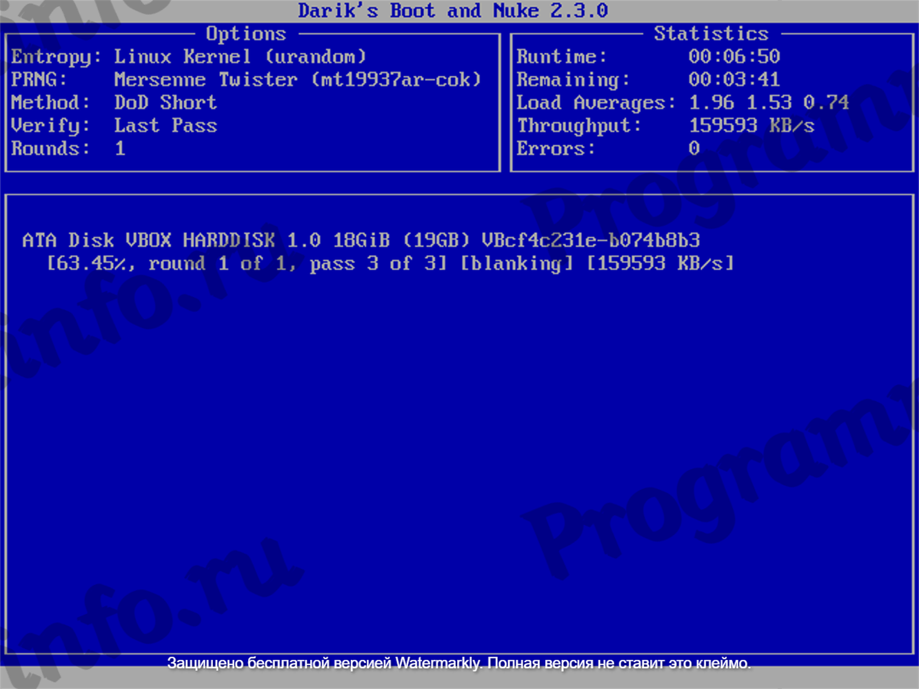 Условно консольная утилита (запускается как загрузочный образ), предназначенная для глубокого «затирания» данных на жёстком диске без возможности в будущем их восстановить. Не просто помечает все файлы нулевыми байтами, а заполняет всё пространство «нулями».