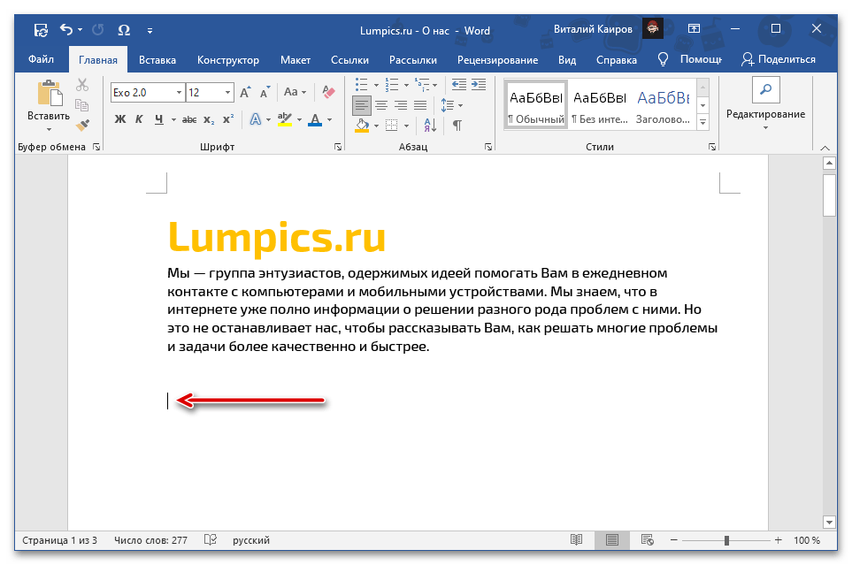 Microsoft Word поддерживает большинство стандартных для настольных операционных систем Windows и macOS сочетаний клавиш, одним из которых и следует воспользоваться для вставки предварительно скопированного текста. Просто установите указатель курсора (каретку) в нужное место документа и воспользуйтесь одной из представленных ниже комбинаций.