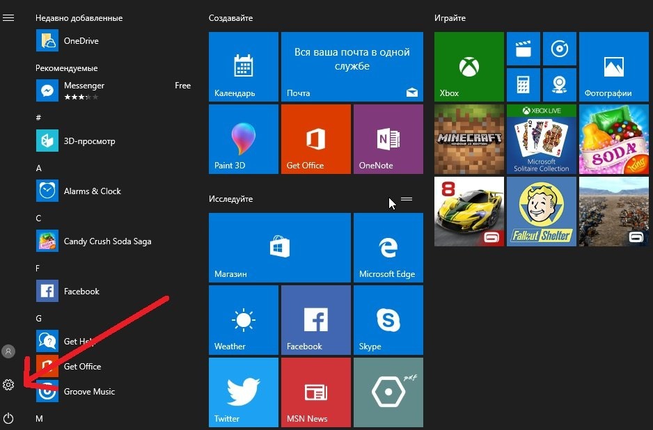 Сначала перейдите в меню «ПУСК» и нажмите «Параметры».