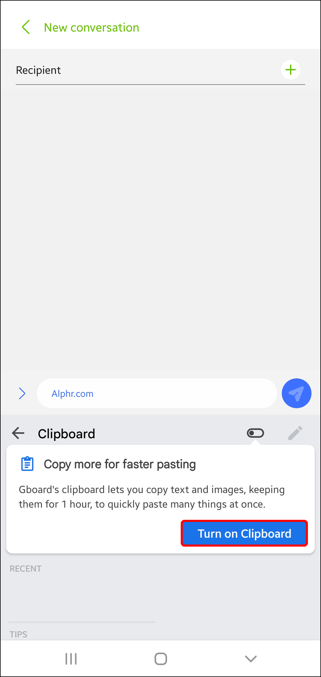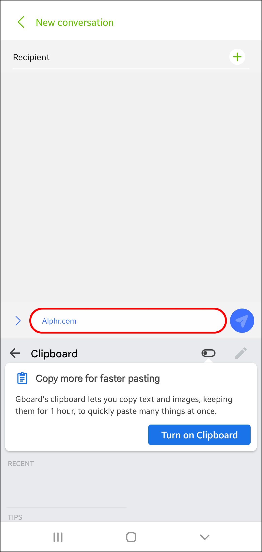2.При наборе текста в Gboard нажмите на иконку буфера обмена над буквами.