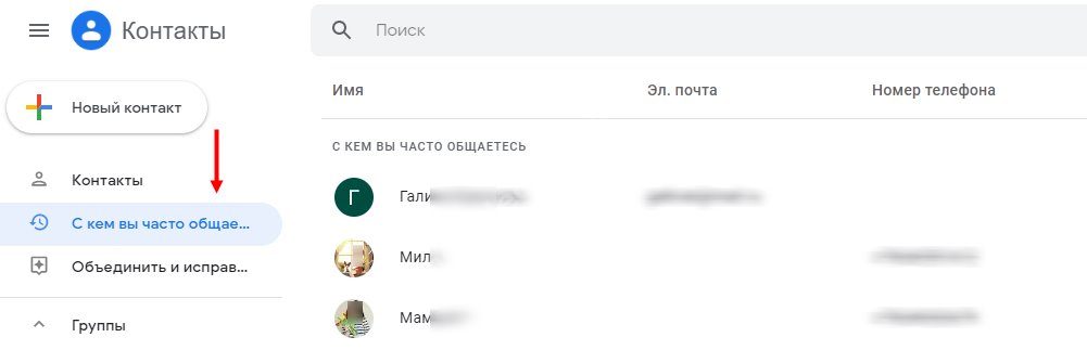 Вторая строка — С кем вы часто общаетесь. Здесь можно посмотреть только тех людей, с которыми вы переписываетесь по почте Gmail. В категории Объединить и исправить можно внести правки.