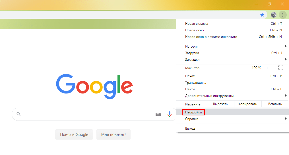 - Открываем настройки браузера;