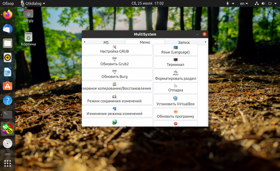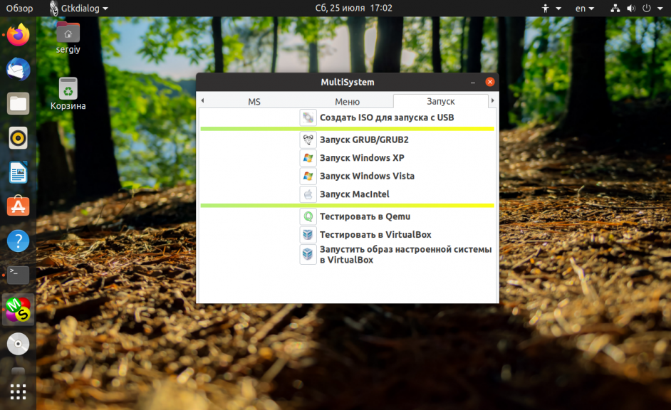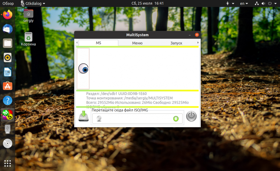 После завершения установки, можно начинать создание мультизагрузочной флешки linux. Подключите вашу USB флешку, и запустите MultiSystem из главного меню системы или через терминал: