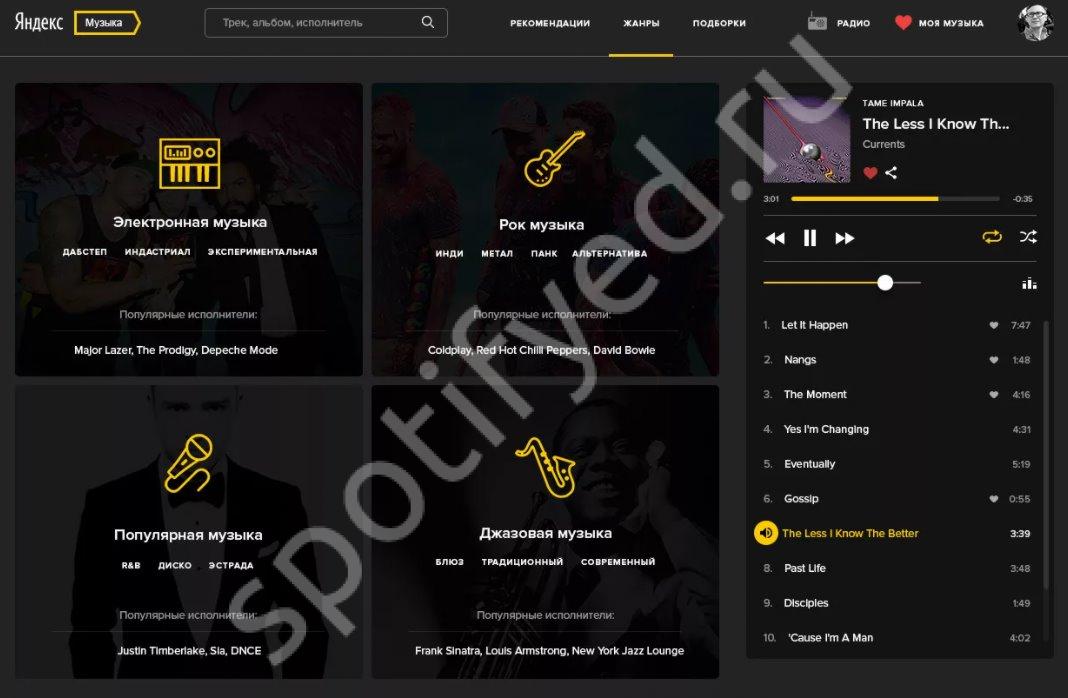 При сравнении Spotify VS Yandex Music нельзя обойти стороной и второй сервис, пользующийся наибольшим спросом в РФ и странах СНГ. Яндекс Музыка — проект одноименной компании Yandex, предлагающий клиентам прослушивать музыкальные композиции, подборки треков и альбомы с учетом музыкальных рекомендаций пользователей. Как и в случае со Spotify, здесь также существуют приложения для ОС Android или iOS, а также Windows и Windows Phone. Годом основания считается 2010-й.