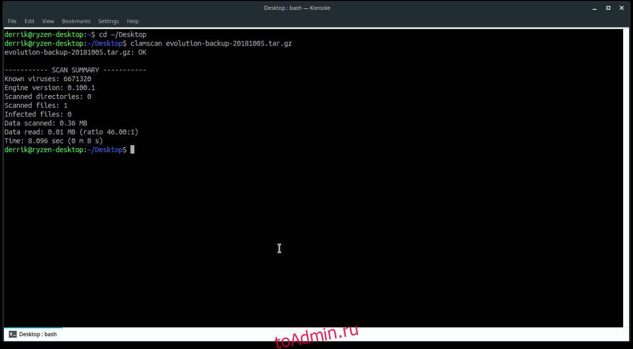 Домашний каталог в Linux — это основное место, с которым пользователи взаимодействуют на компьютере. Поэтому, если у вас есть вирус, он будет в этой папке или во многих подпапках. Чтобы просканировать домашнюю папку, укажите команду clamscan на / home / username /. В качестве альтернативы используйте ~ /, если вы не хотите вводить имя пользователя.