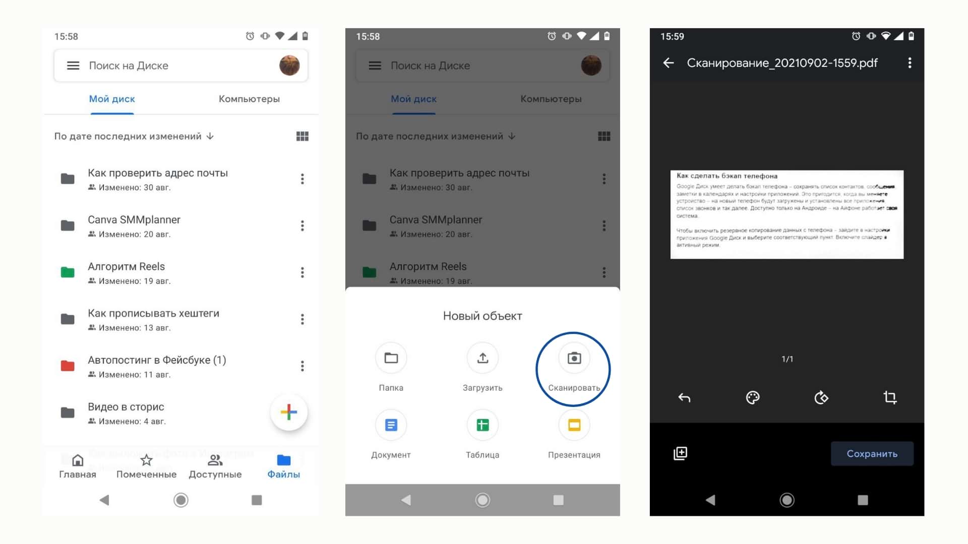 Как сканировать документ в Google Диске