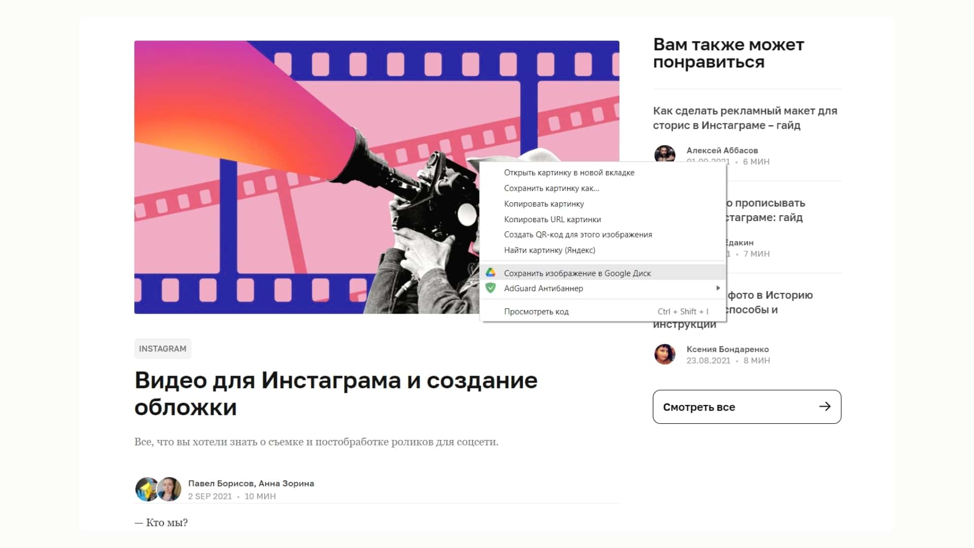 Вы можете сохранять любые картинки из браузера с помощью расширения «Сохранить на Google Диске». После установки кликните правой кнопкой мыши по изображению и отправьте его в облако.