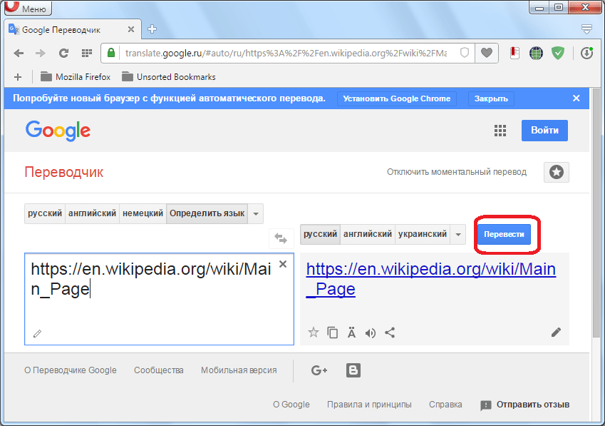 - Сервис переведёт страницу автоматически, но если он этого не сделал, то нажмите на кнопку «Перевести».